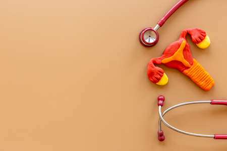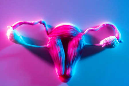 A model of the reproductive system of women. Anatomical model of uterus with ovaries. The concept of a healthy female reproductive system
