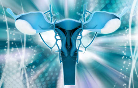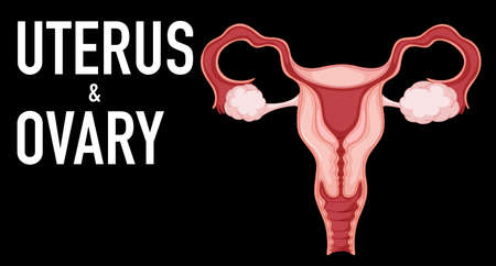 Uterus and female reproductive system on abstract background. Vector illustration.