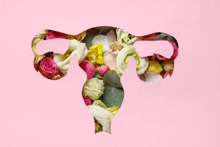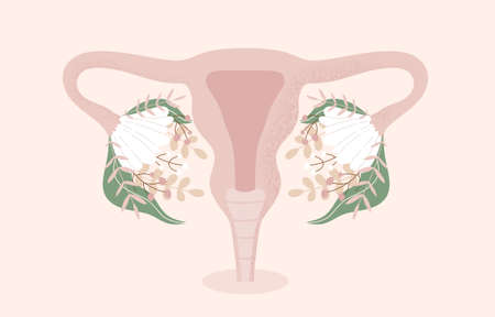 Organ of the uterus with flowers, female nature. Woman reproductive health illustration.