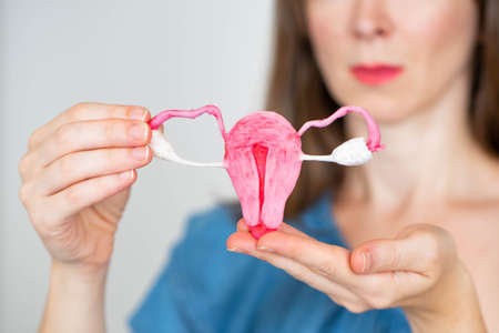 doctor Gynecologist holds model of female reproductive system in the hands. Help and care concept