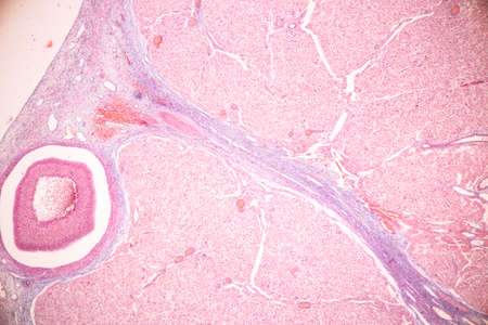 Anatomy and Histological Ovary, Testis and Sperm human cells under microscope.
