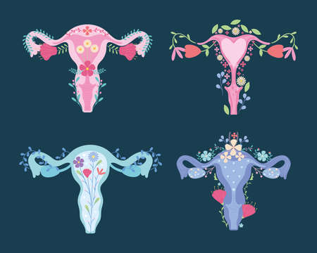 Organ of the uterus with flowers, female nature. Woman reproductive health illustration.