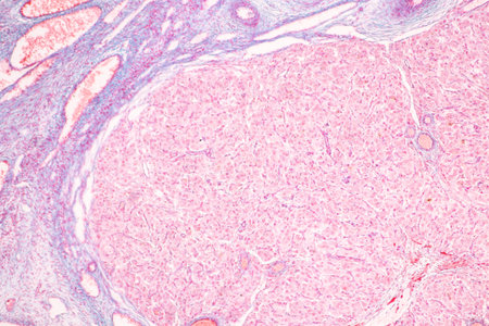 Histological Spermatic cord human, Seminal vesicle human, Prostate human and Human chromosomes under the microscope for education.