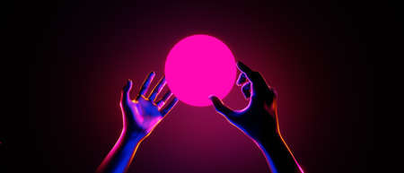 hand backgound video game of esports scifi gaming cyberpunk, vr virtual reality simulation and metaverse, scene stand pedestal stage, 3d illustration rendering, futuristic neon glow room