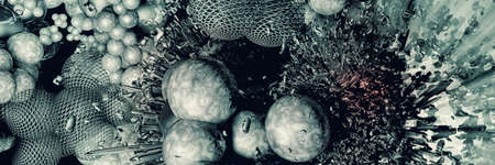 Monkeypox virus cells outbreak wide medical banner. Monkeypox virus cells on dark sciense background.