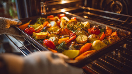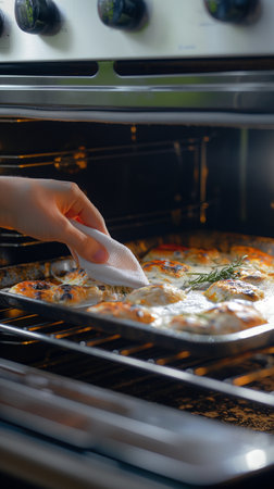 View into the oven on the baking tray professional advertising food photography AI Generated