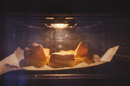 Pastries from puff pastry in the oven in the kitchen.