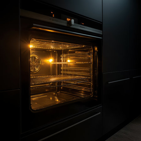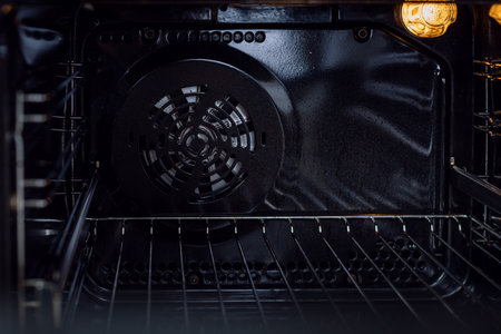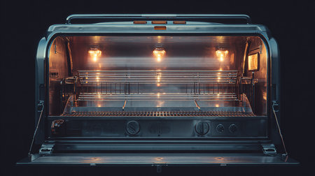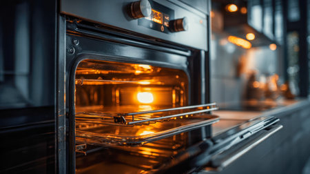 Interior of a modern kitchen oven showcasing clean racks with bright interior lighting and sleek design features enhancing the culinary experience