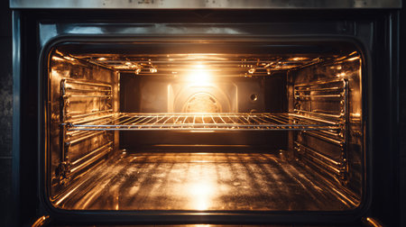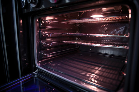 close-up of sparkling clean oven interior, created with generative ai