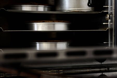 Close up of cakes that are baked in the oven. Domestic oven. Cooking concept.