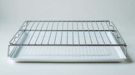 Close-up of a metal rack on a white background with copy space