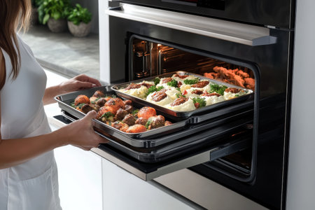 Smart oven display in modern kitchen with baking visualization. That the image is generated using AI.