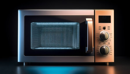 Woman holding black electric ovens door, closing it after putting food inside, preparing dinner for her family, cooking delicious and tasty meals using new kitchen appliances, side view