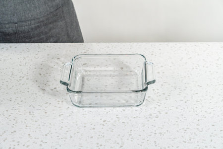 Set of glass baking trays at kitchen. Clean glass bakeware on kitchen table. Glass equipment for cooking.