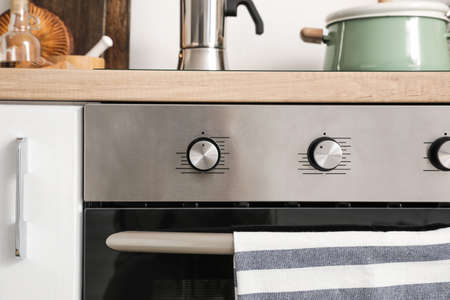 Close up of a modern oven in a modern kitchen. Selective focus.
