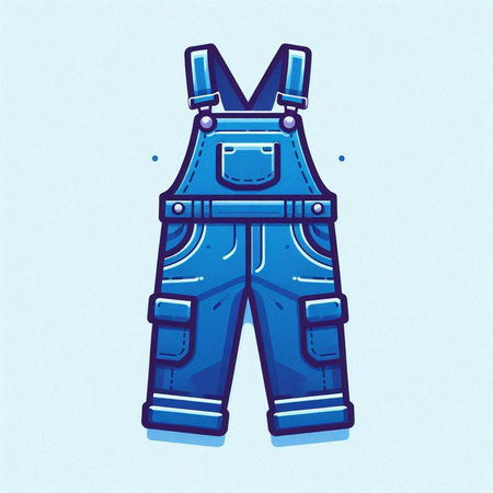 Illustration of a blue overalls on a light blue background.
