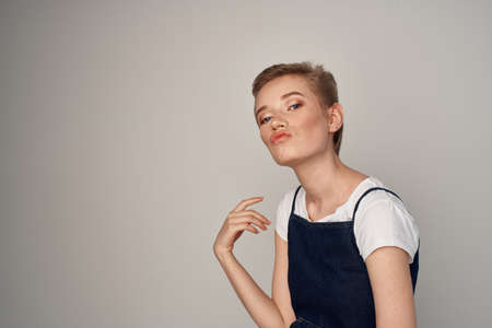 Woman in working uniform blue cap service lifestyle service