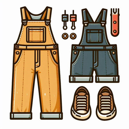 Colorful overalls isolated on a white background. Vector illustration.
