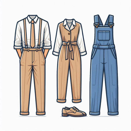 Vector illustration of a set of men's pants and overalls.