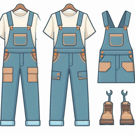 Set of work overalls. Vector illustration in flat cartoon style.