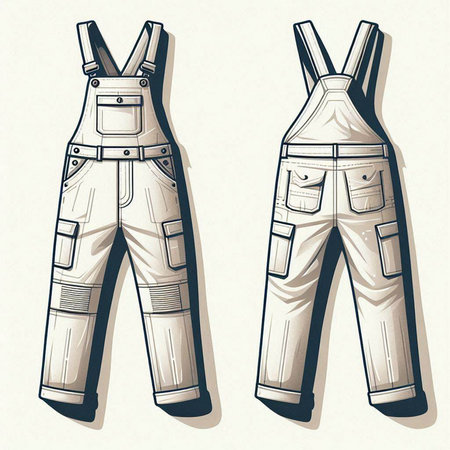 Vector illustration of work overalls. Hand-drawn illustration of work overalls.