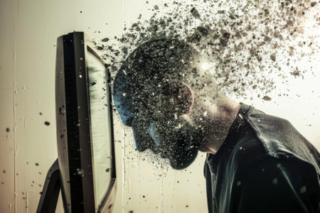 A portrait of a man with his head appearing to explode, symbolizing overwhelming emotions or intense distress