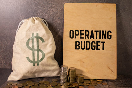 Closeup on businessman holding a card with text OPERATING BUDGET, business concept image with soft focus background and vintage tone