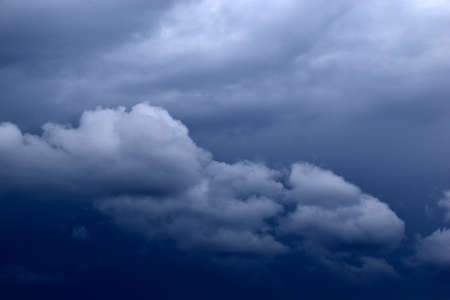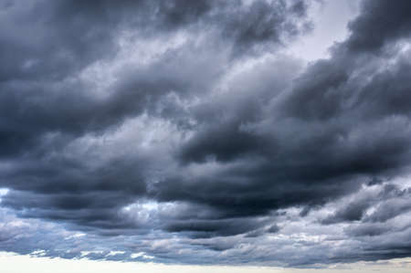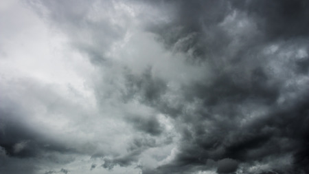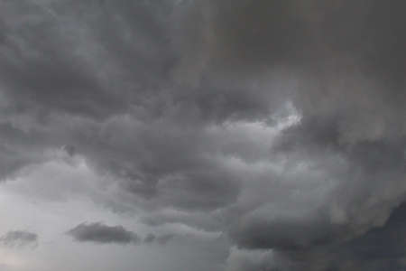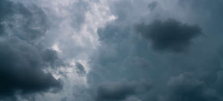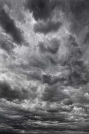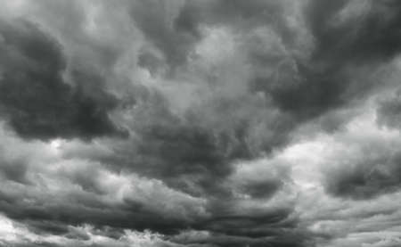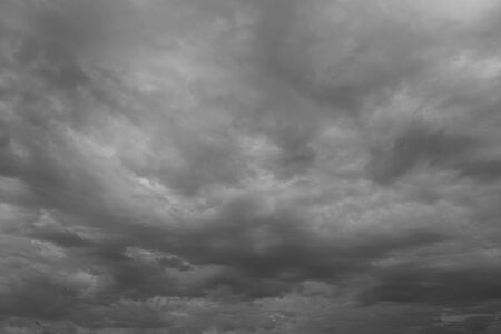 Dark monochrome heavy storm clouds before a thunderstorm or hurricane. Dramatic clouds in overcast weather. Cloudscape.
