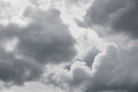 Dark dramatic sky and clouds. Background for death and sad concept. Gray sky and fluffy white clouds. Thunder and storm sky. Sad and moody sky. Nature background. Dead abstract background. Cloudscape.