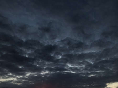 Tropical ominous clouds in front of the hurricane. Awesome photo of the texture of storm clouds. Adverse weather conditions. Climate change. Wallpaper force of nature. Discover the beauty of earth.