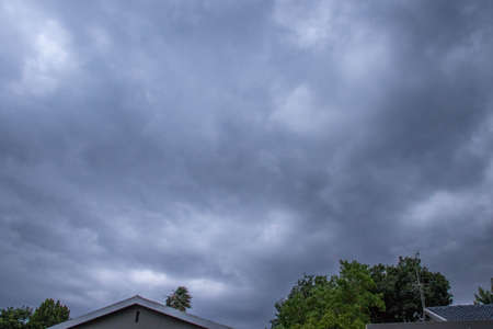 Dark storm clouds in autumn. An impending storm, hurricane or thunderstorm. Bad extrime weather.