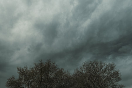 The dark sky filled with swirling clouds forebodes an approaching windstorm, showcasing the power of nature's forces and the dramatic shifts in weather during turbulent atmospheric conditions.