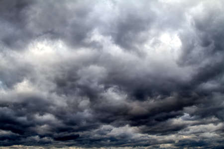 Dark monochrome heavy storm clouds before a thunderstorm or hurricane. Dramatic clouds in overcast weather. Cloudscape.