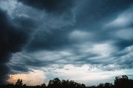Dark storm clouds in autumn. An impending storm, hurricane or thunderstorm. Bad extrime weather.