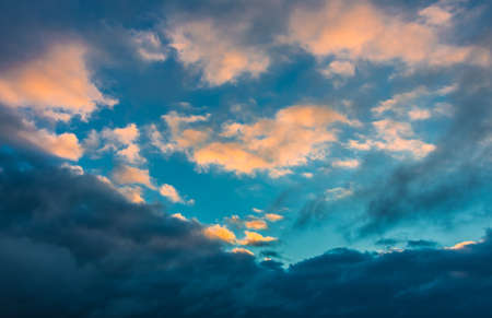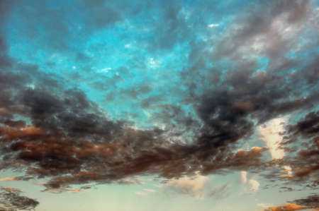 Dark stormy sky background with many colors. Natural dark clouds background.