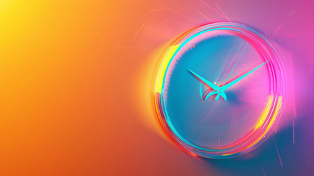 This image features a modern, colorful clock design against a vibrant gradient background. The abstract art captures the essence of time with energy and creativity.