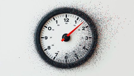 top view of an alarm clock surrounded by morning routine items, created with generative ai