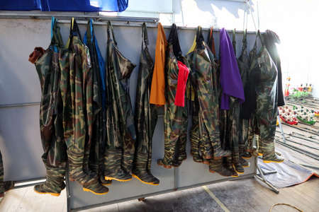 Hoi An, Vietnam, February 24, 2020: Different costumes for working in the water used by the puppet handlers of the Hoi An Water Puppet Theater, Vietnam
