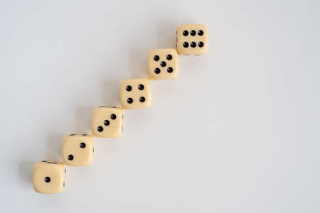 white dice on a yellow background different values of numbers