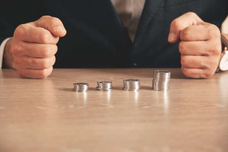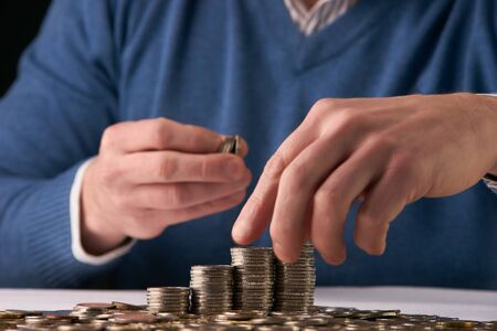 Man putting coins on stack with holding money, Concept business, finance, money saving