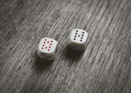 two game dice on dark table