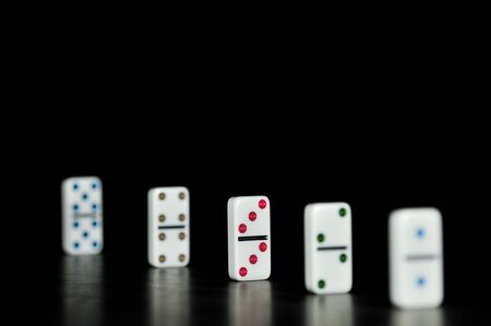 Domino pieces put in a row on black background