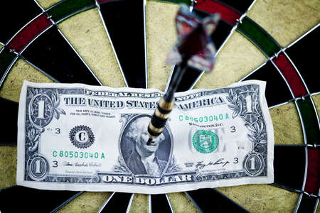 Darts target and dollar in bull's-eye