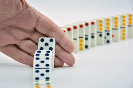 Business control concept by stopping domino effect; light effect