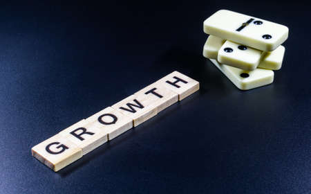 growth concept, word arranged with wooden block letters with concept in black background