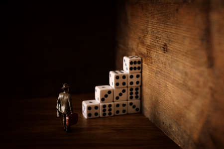 A surrealistic image of a man facing a dead end after trying his luck and encountering a problem. concept of fear and anxiety