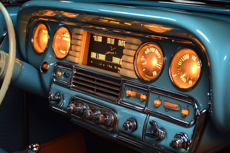 Close up on a dashboard of vintage car