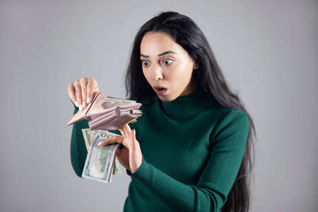 Earn money, get a good revenue. A female hand and a lot of cash,