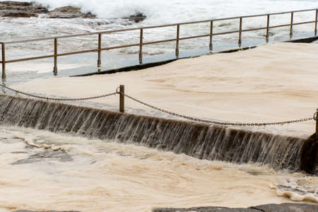 Ocean storm aftermath: A mass of thick foam covered the rock pool following extreme storm weather at Cronulla, NSW, Australia.