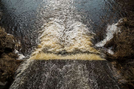 Waste water splashing. Mud dirty water brown water in the river, sand in the water in the spring
